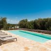 What truly sets Trullo Imago apart is its spacious and bright veranda with fully glazed sliding walls that perfectly blend with the outdoor living. Here, you can dine and unwind in the nature, with panoramic views of the Mediterranean-style garden. The private pool, directly connected to the villa, offers both privacy and convenience, surrounded by tranquil olive groves that paint an idyllic backdrop.